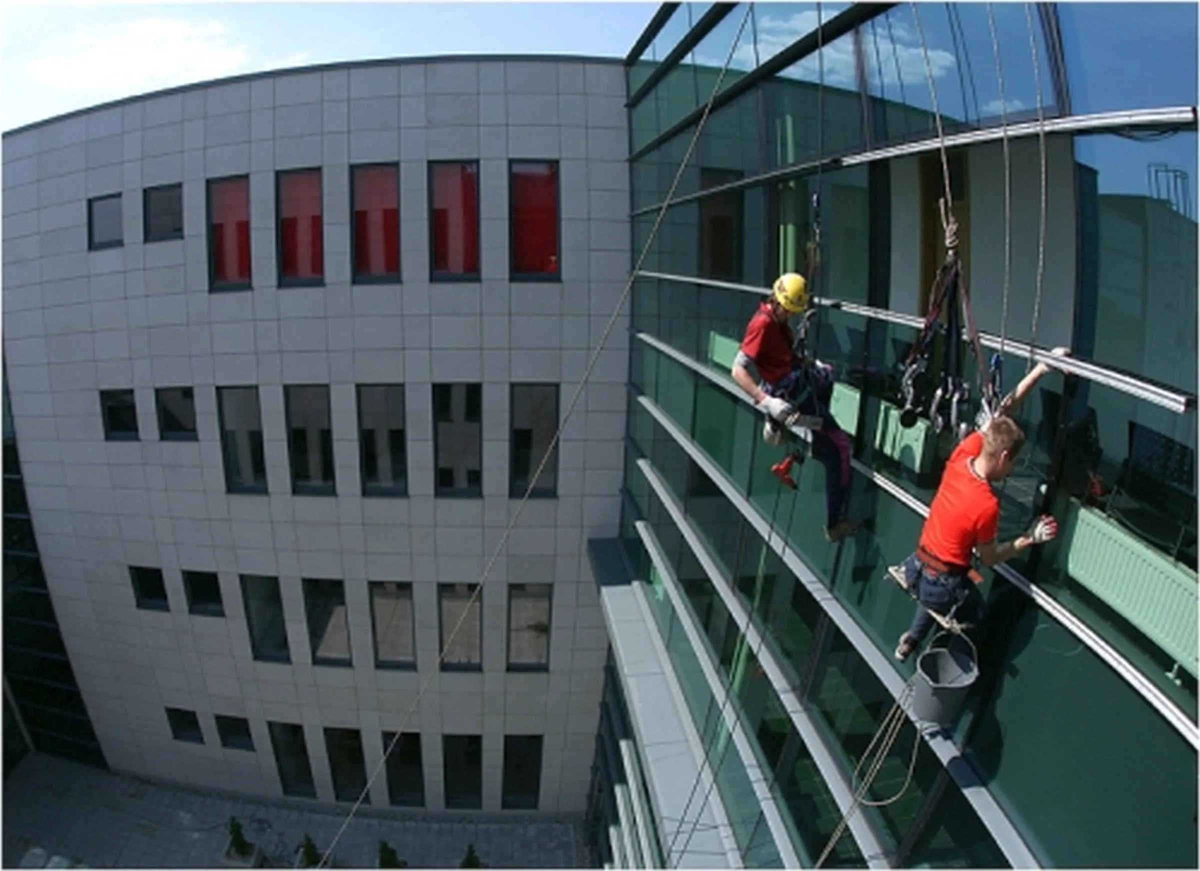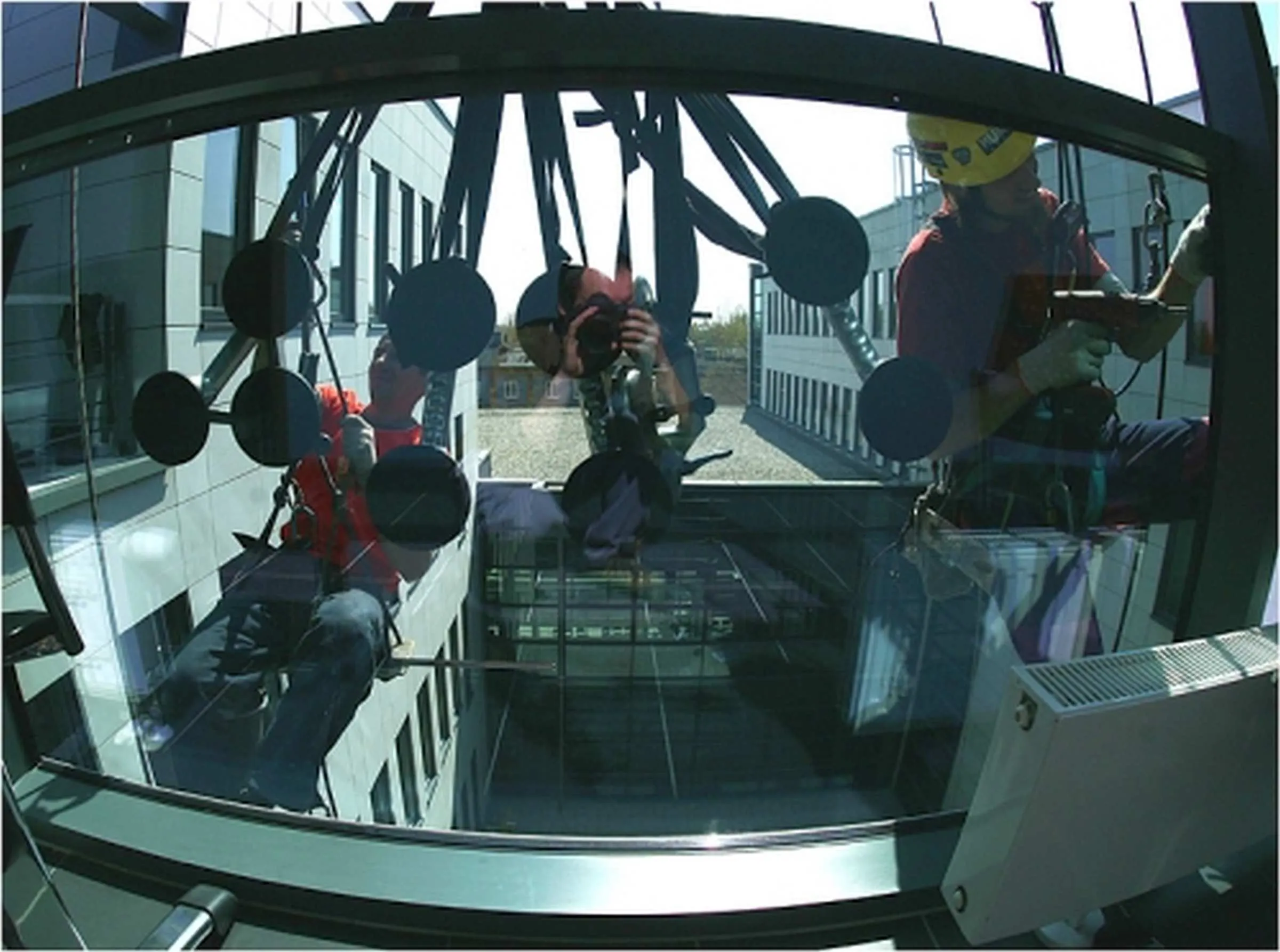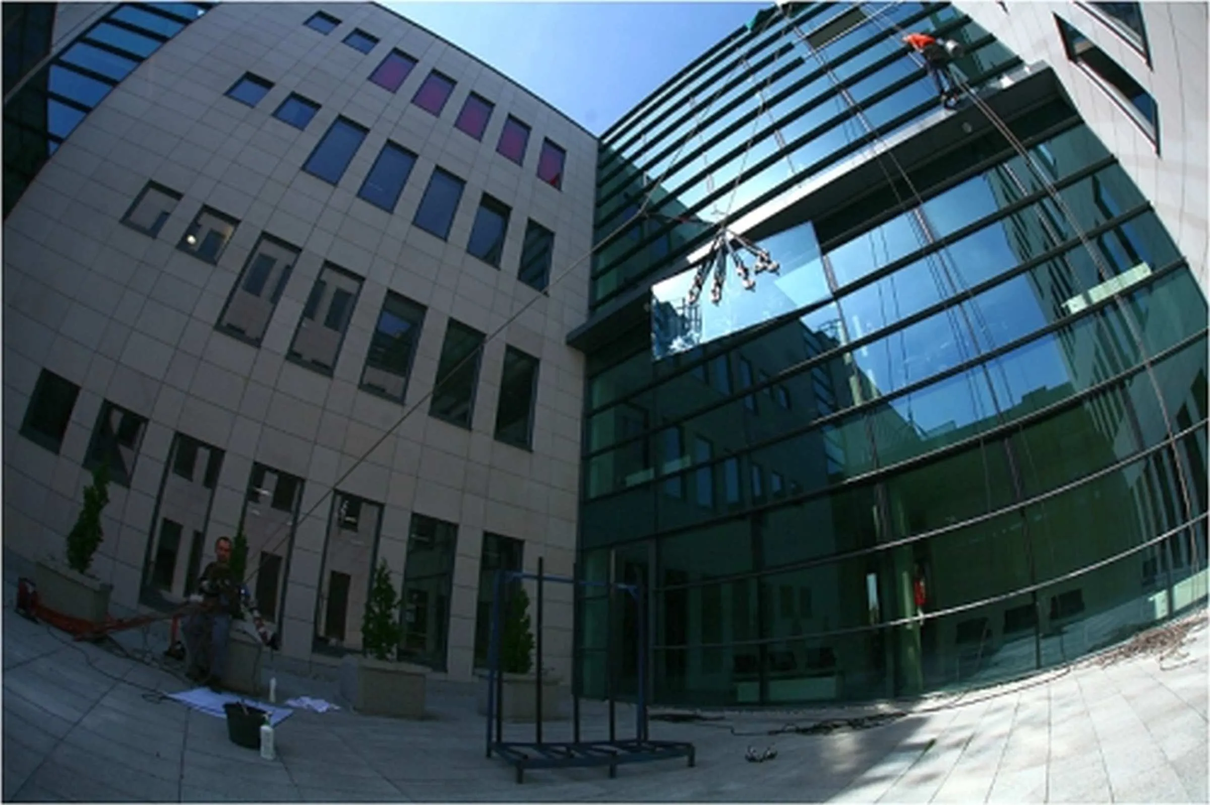 Montaż szyb elewacyjnych Atrium – Wydział Neofilologii UŚ w Sosnowcu