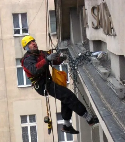 Montaż ozdób oświetleniowych – Teatr Śląski im. Stanisława Wyspiańskiego w Katowicach, grudzień 2013