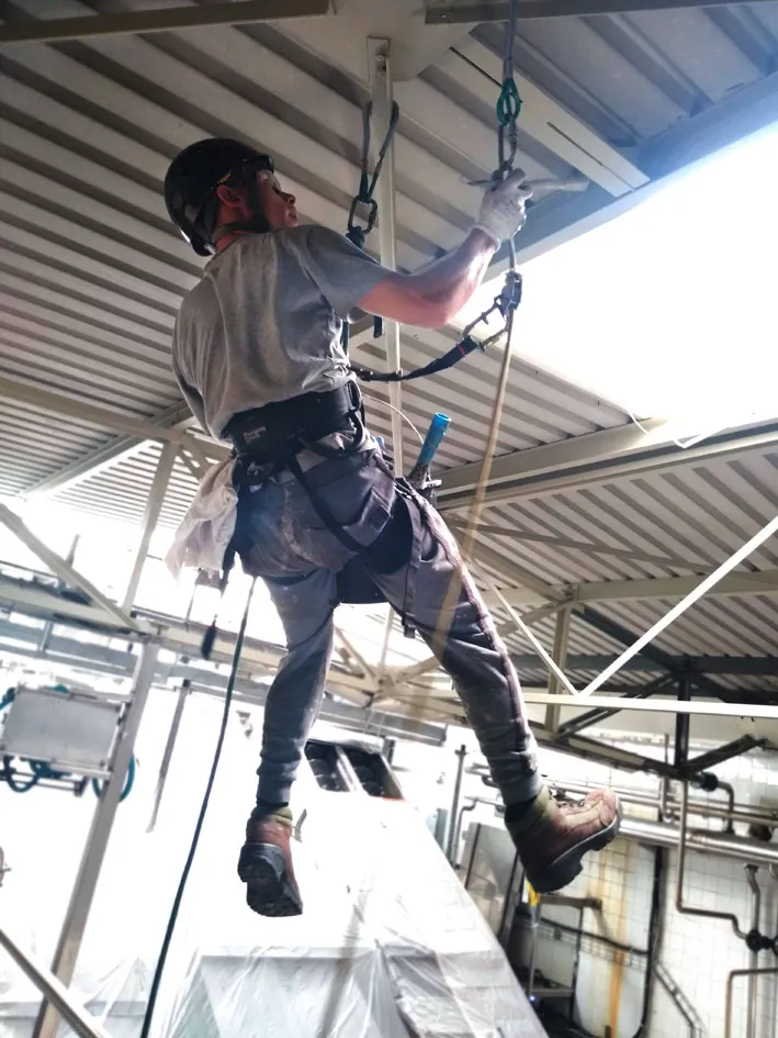 Oferujemy usługi wysokościowe związane z montażem czujników na konstrukcjach hal oraz na zewnątrz budynków, w miejscach dostępnych z wykorzystaniem technik dostępu linowego.