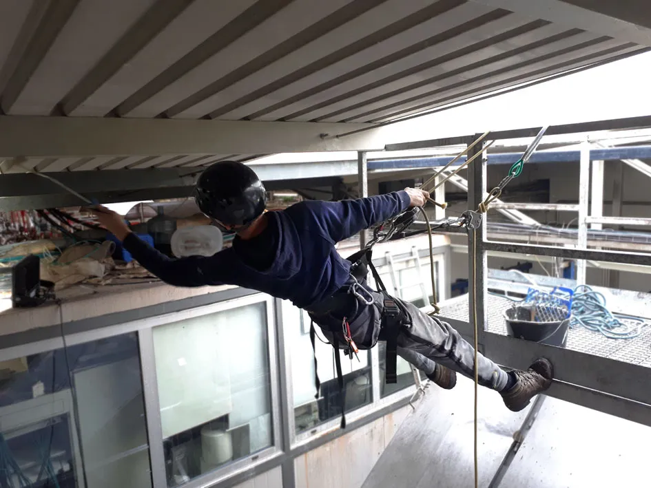 Nasza firma oferuje prace wysokościowe związane z elewacjami systemowymi, fasadami, oknami oraz świetlikami. Zajmujemy się myciem i czyszczeniem, uszczelnianiem, naprawą, wymianą i montażem elementów (np. szyb) wszędzie tam gdzie niezbędne jest wykorzystanie technik dostępu linowego i transportu wysokościowego.