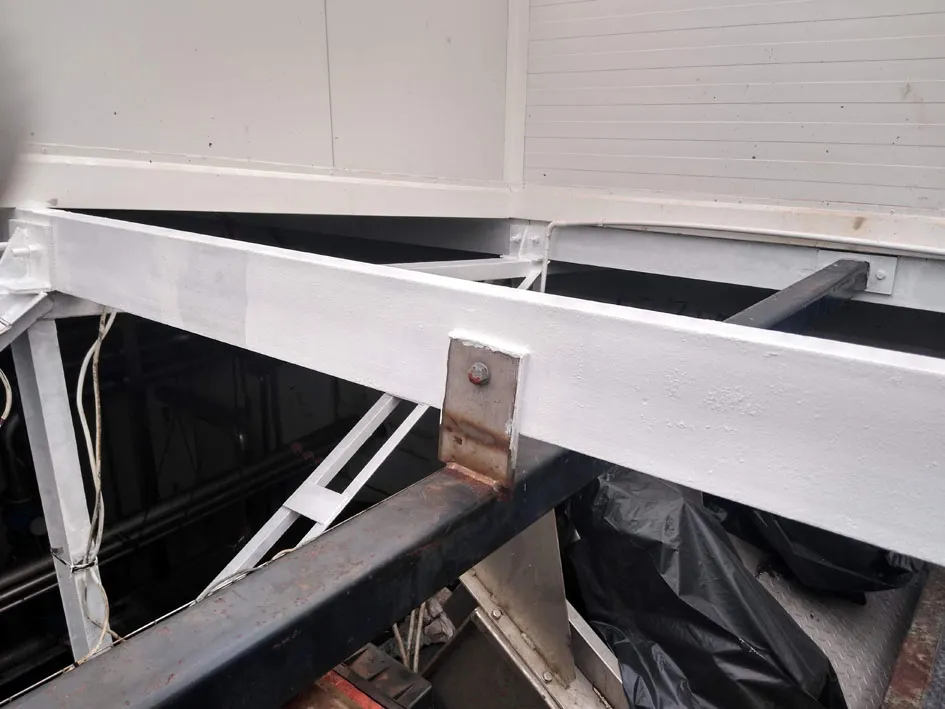 Profil konstrukcji nośnej, po stronie lewej widoczna druga warstwa epoksydowej farby chemoodpornej. Po stronie prawej widoczna trzecia – ostateczna warstwa.