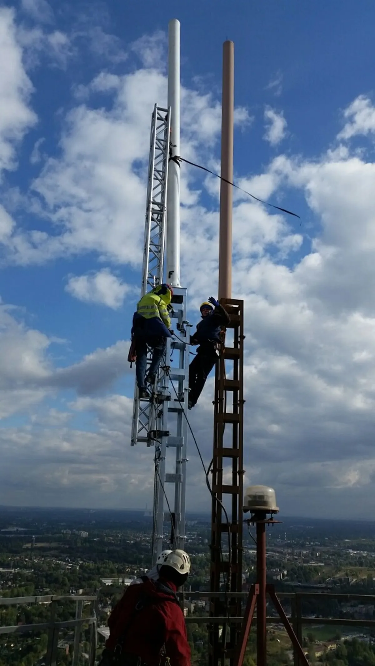 Montaż anteny radiowej na szczycie komina o wysokości 200m – EC Katowice