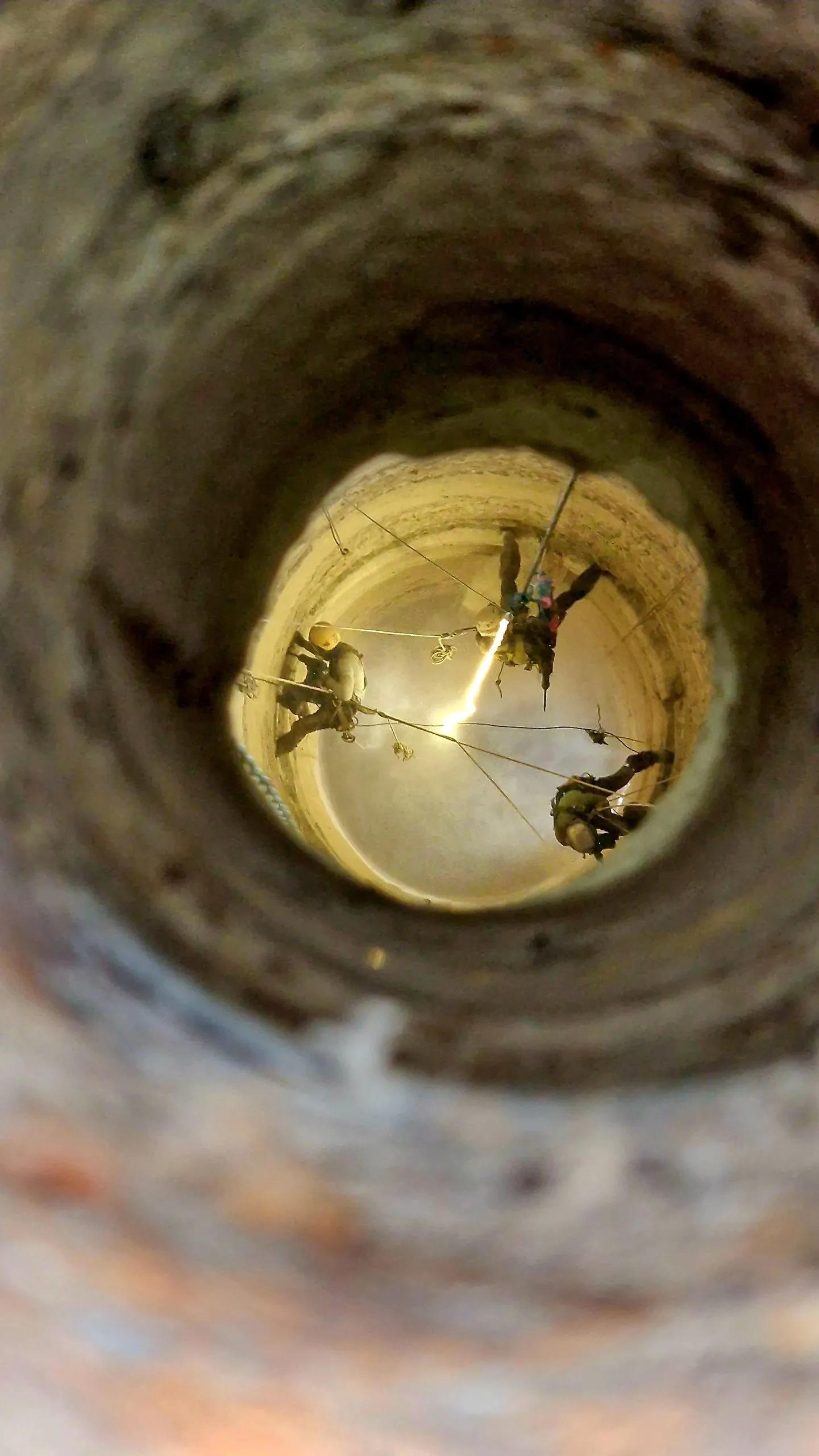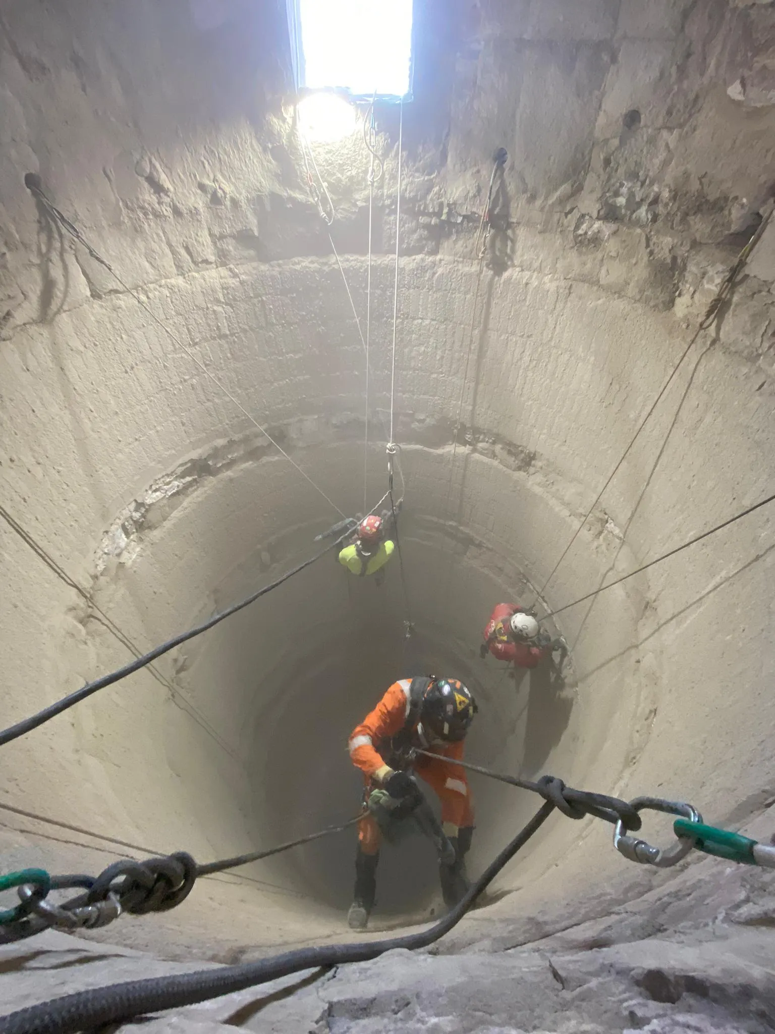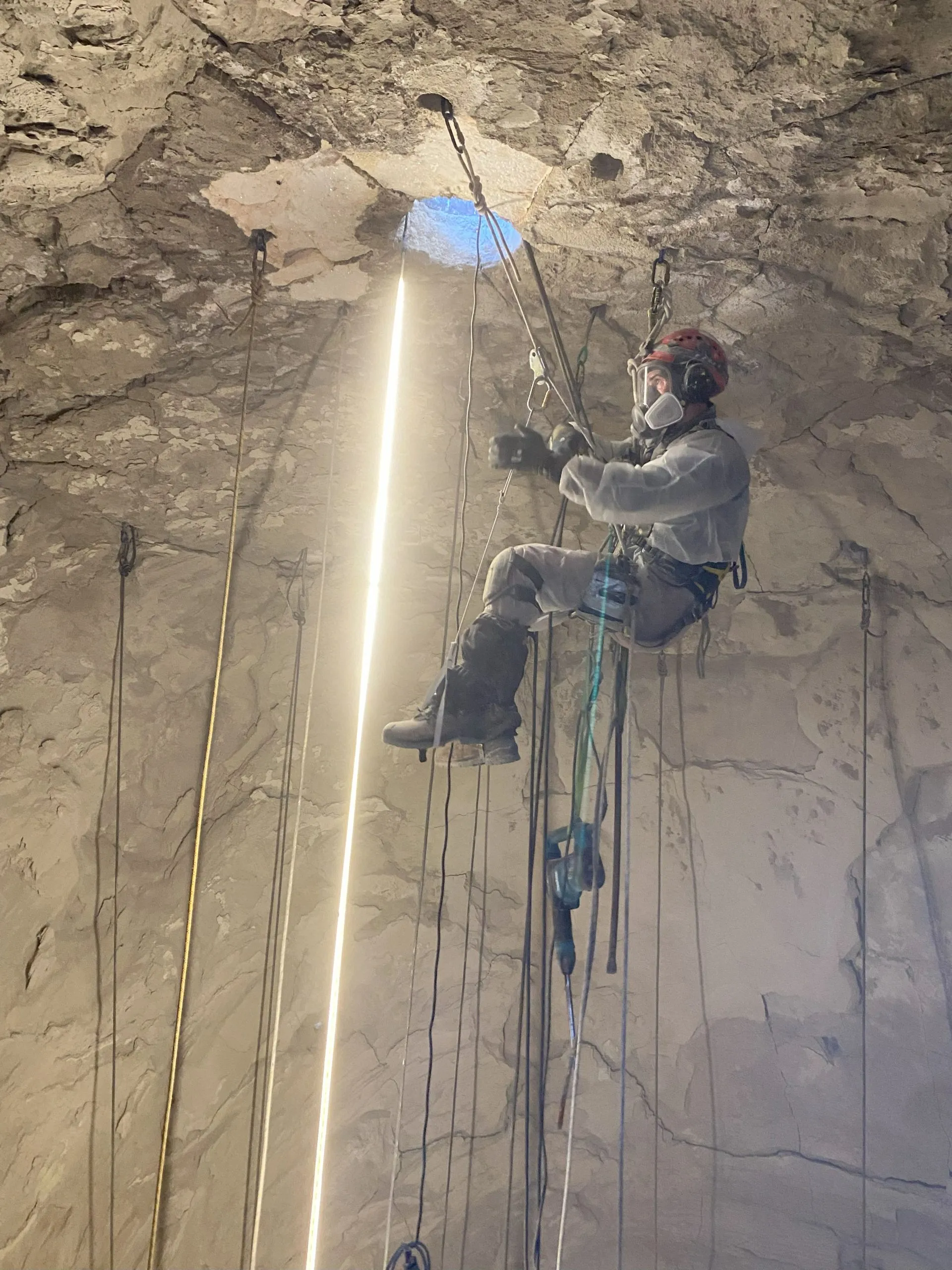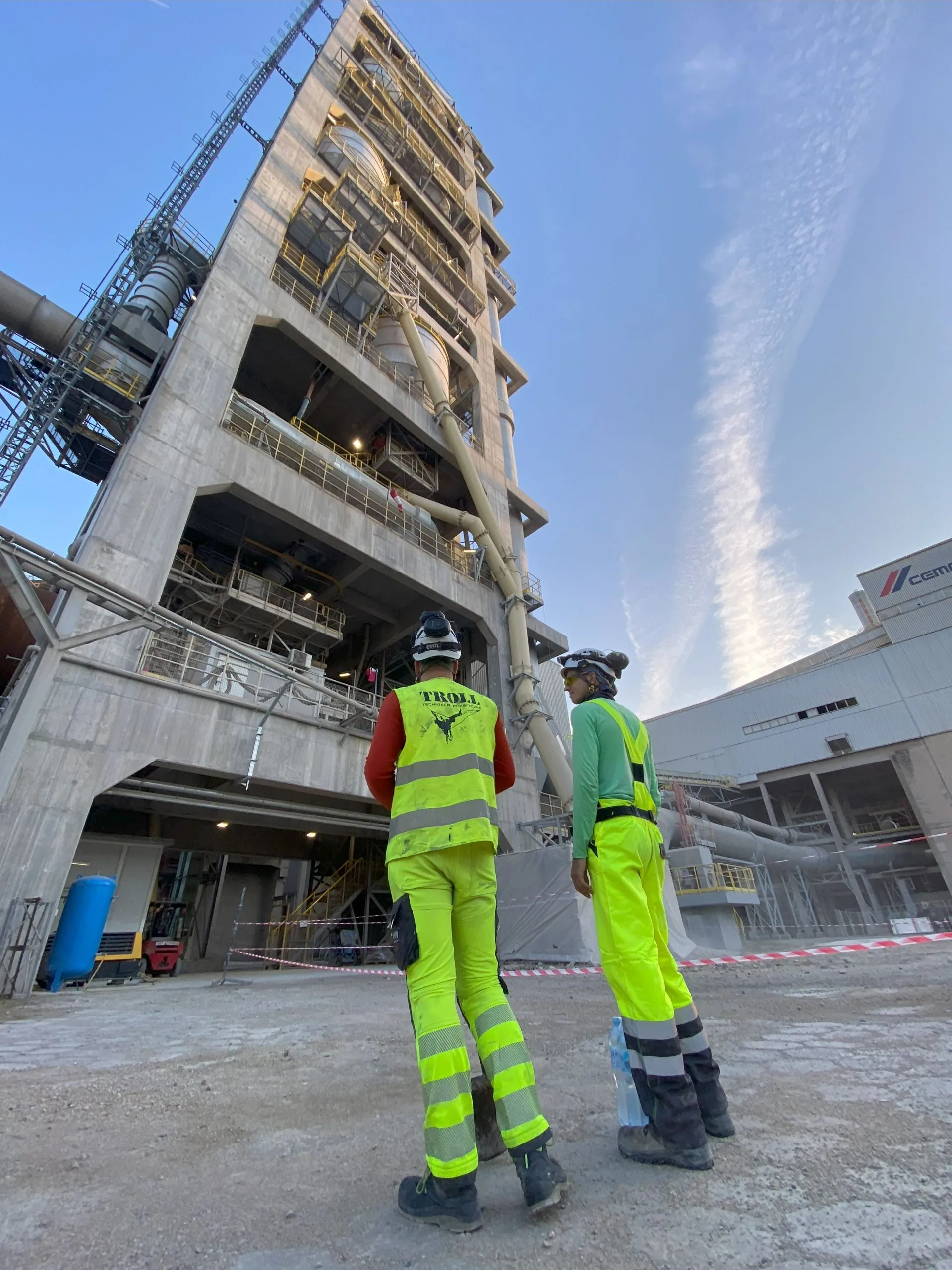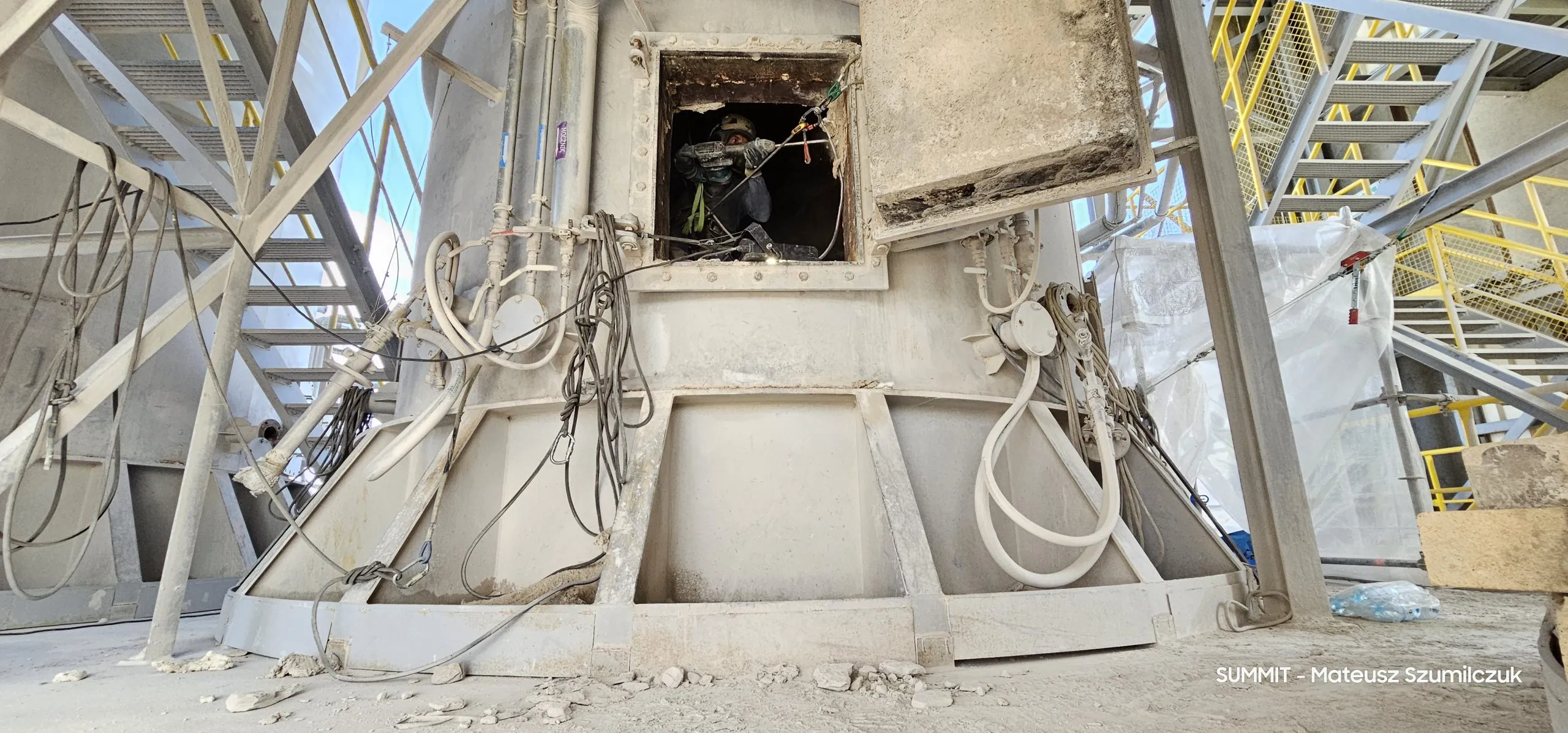 Czyszczenie napieków w instalacji produkcji cementu z wykorzystaniem technik dostępu linowego.