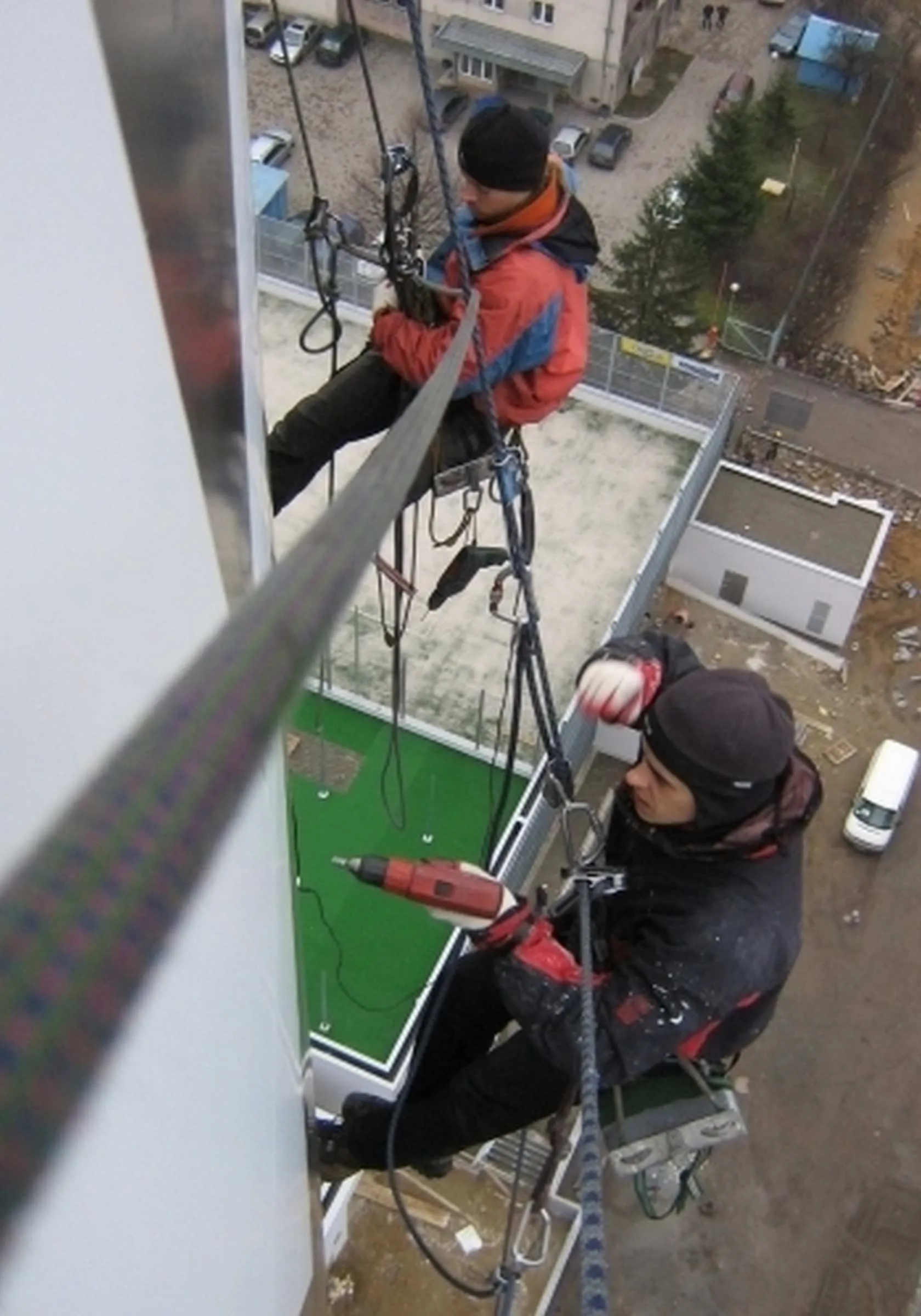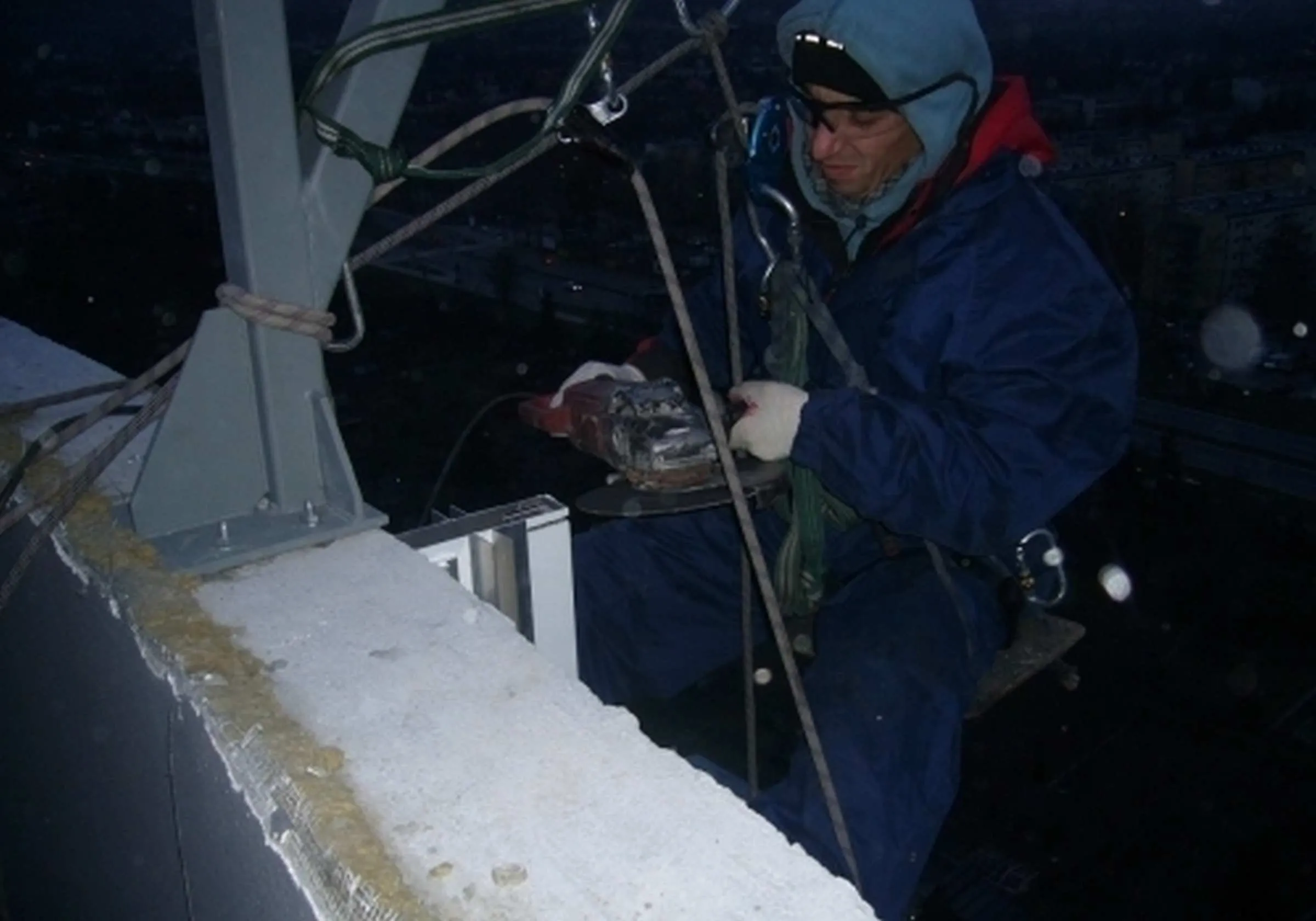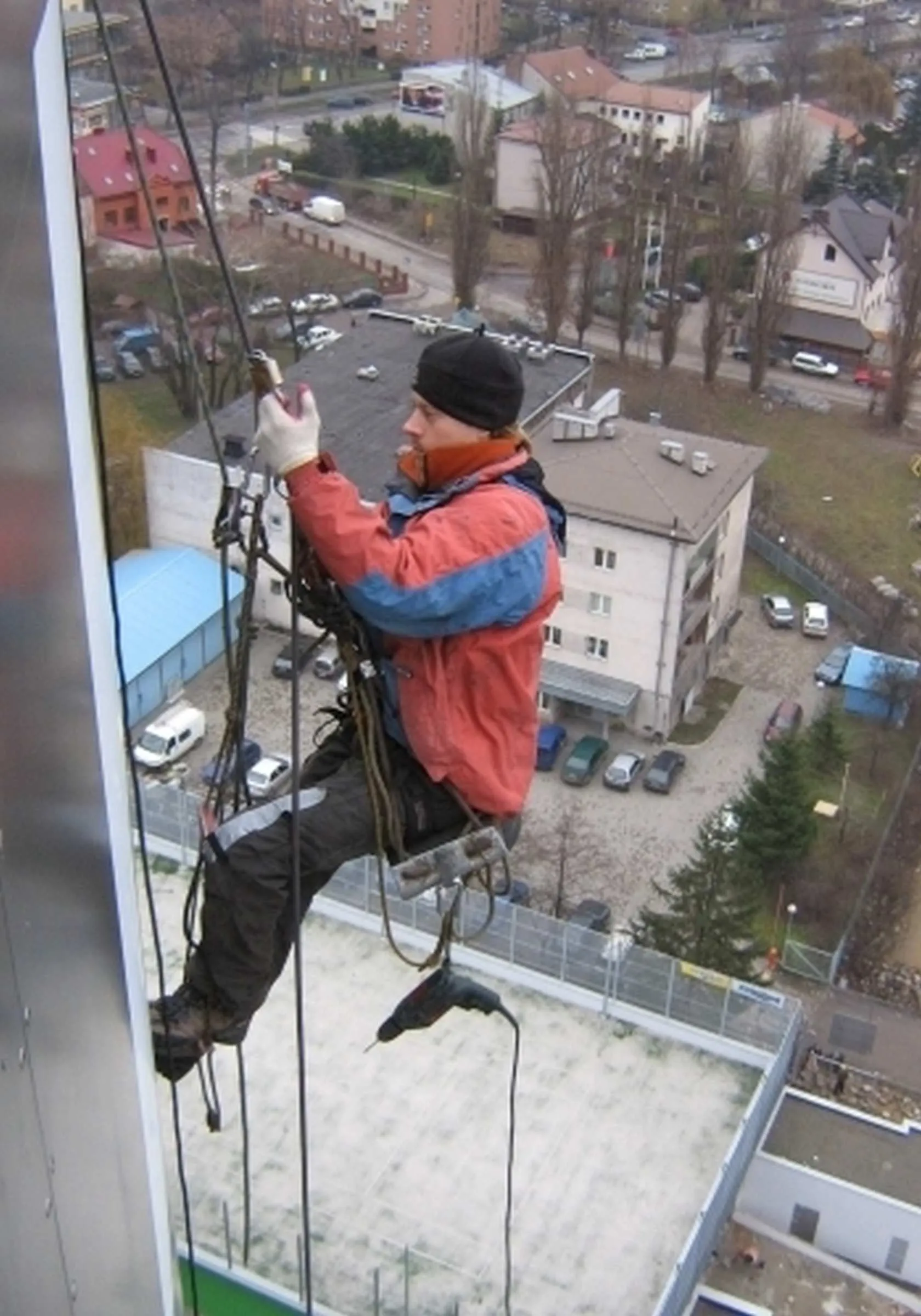 Transport i montaż liter świetlnych na elewacji budynku o wysokości 55m – Salwator Tower w Krakowie, grudzień 2006