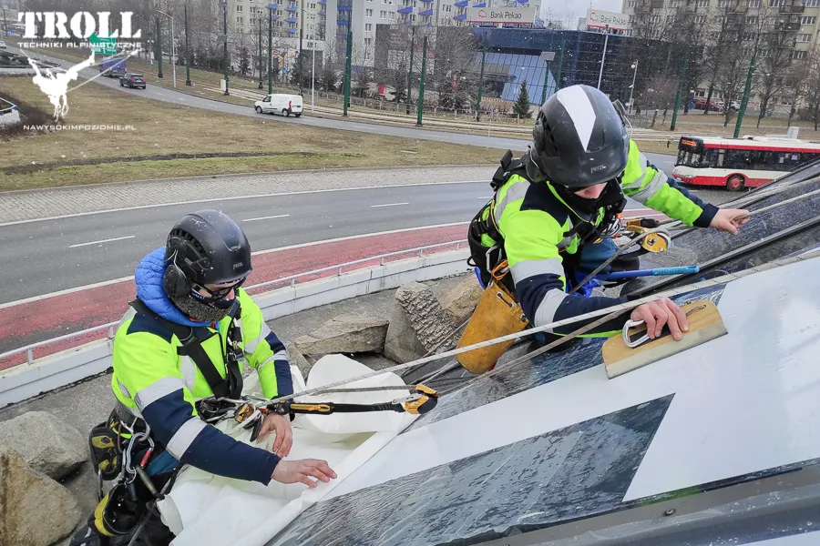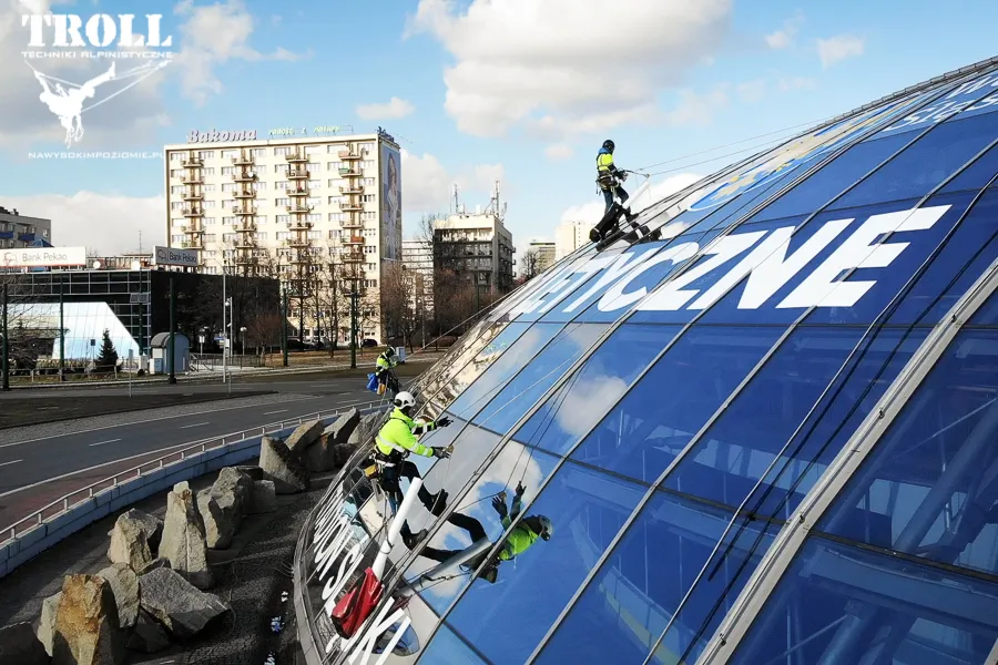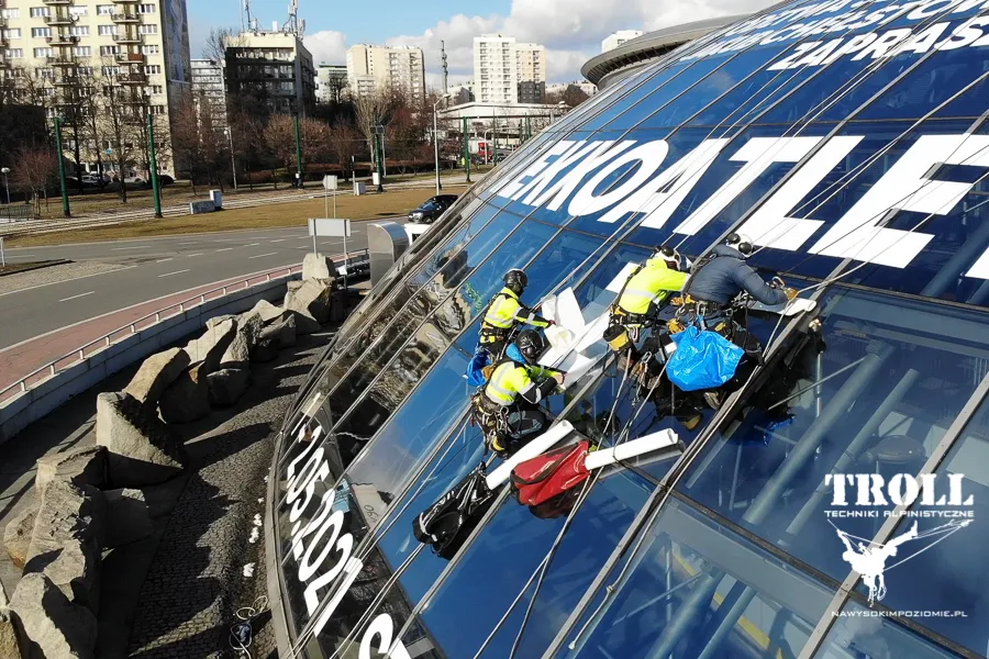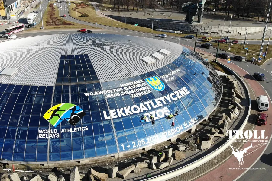 W marcu 2021 wykonaliśmy usługę wyklejania reklamy na szybach elewacji jednego z najbardziej rozpoznawalnych obiektów Katowic – Ronda Sztuki. Prace trwały cztery dni i polegały na przygotowaniu powierzchni (myciu szyb), a następnie wyklejeniu liter i logotypów promujących wydarzenie.