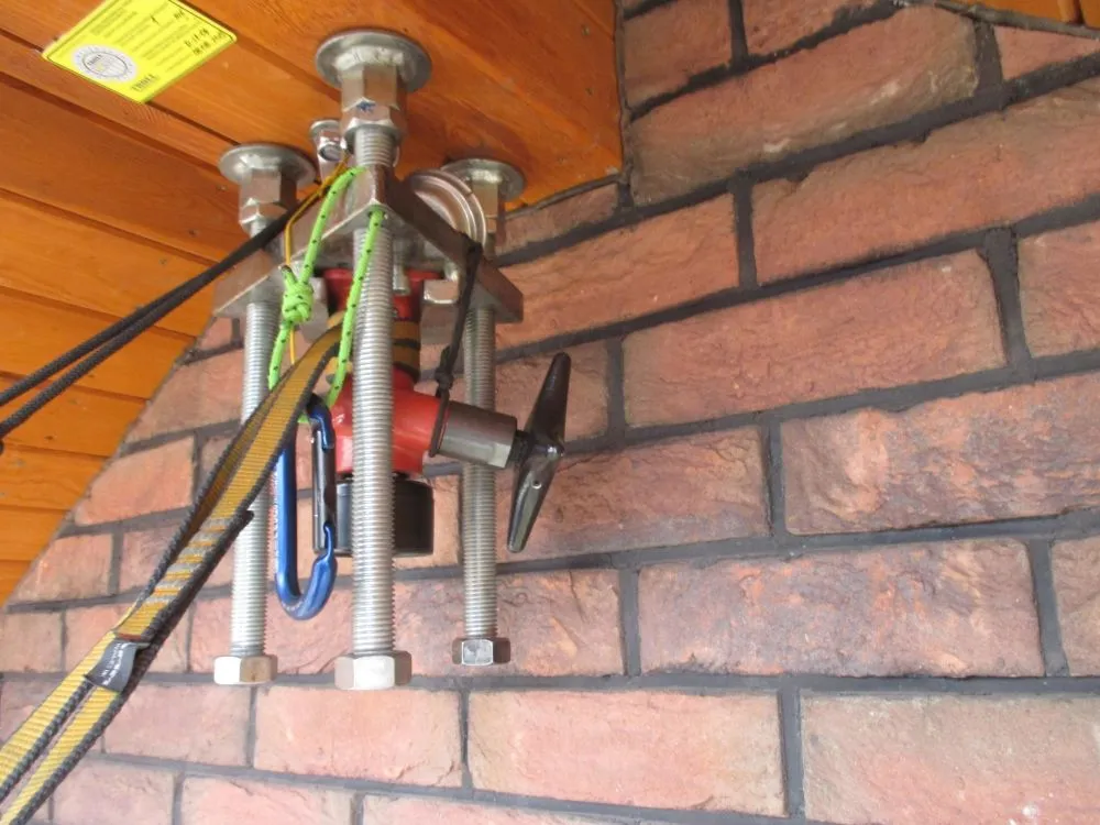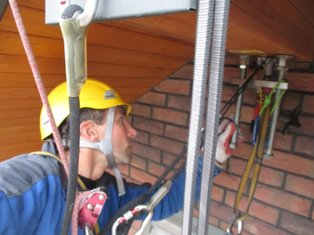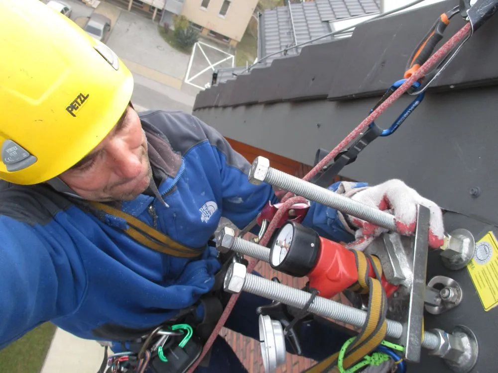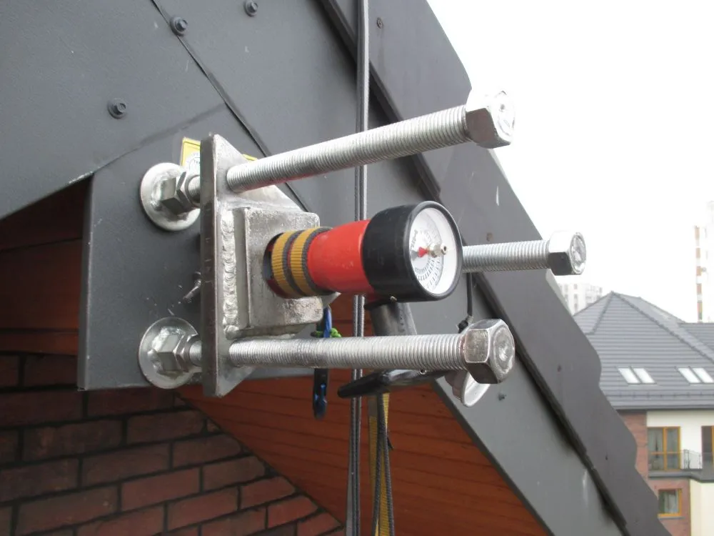 Okresowy przegląd wytrzymałości strukturalnych punktów asekuracyjnych EN795 klasy A1 – Katowice oś. Paderewskiego 47, listopad 2015