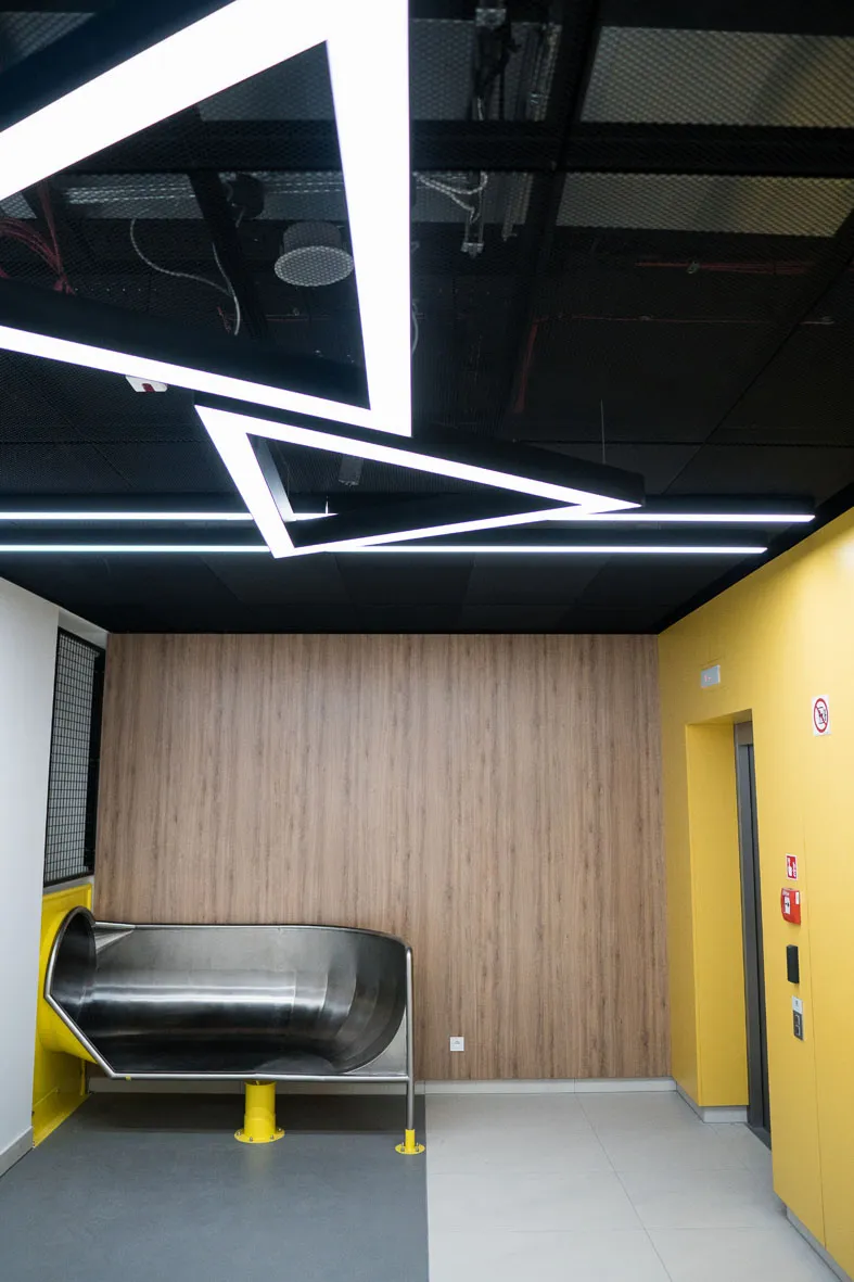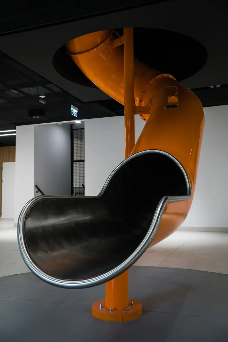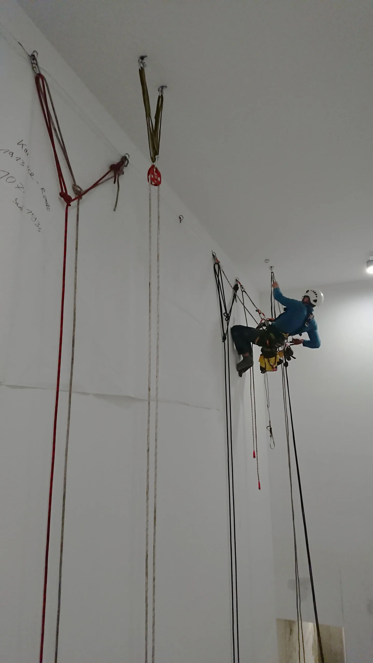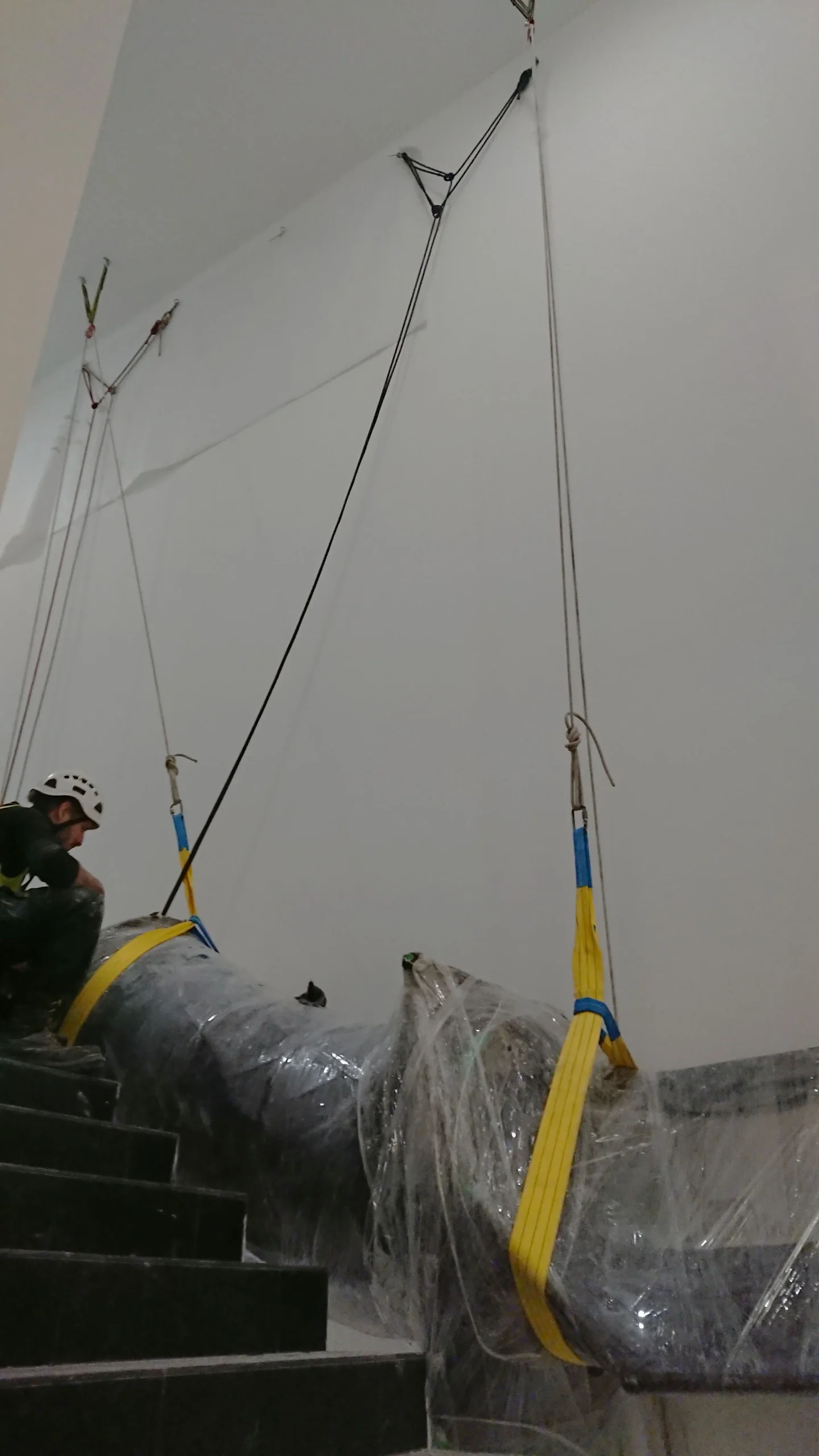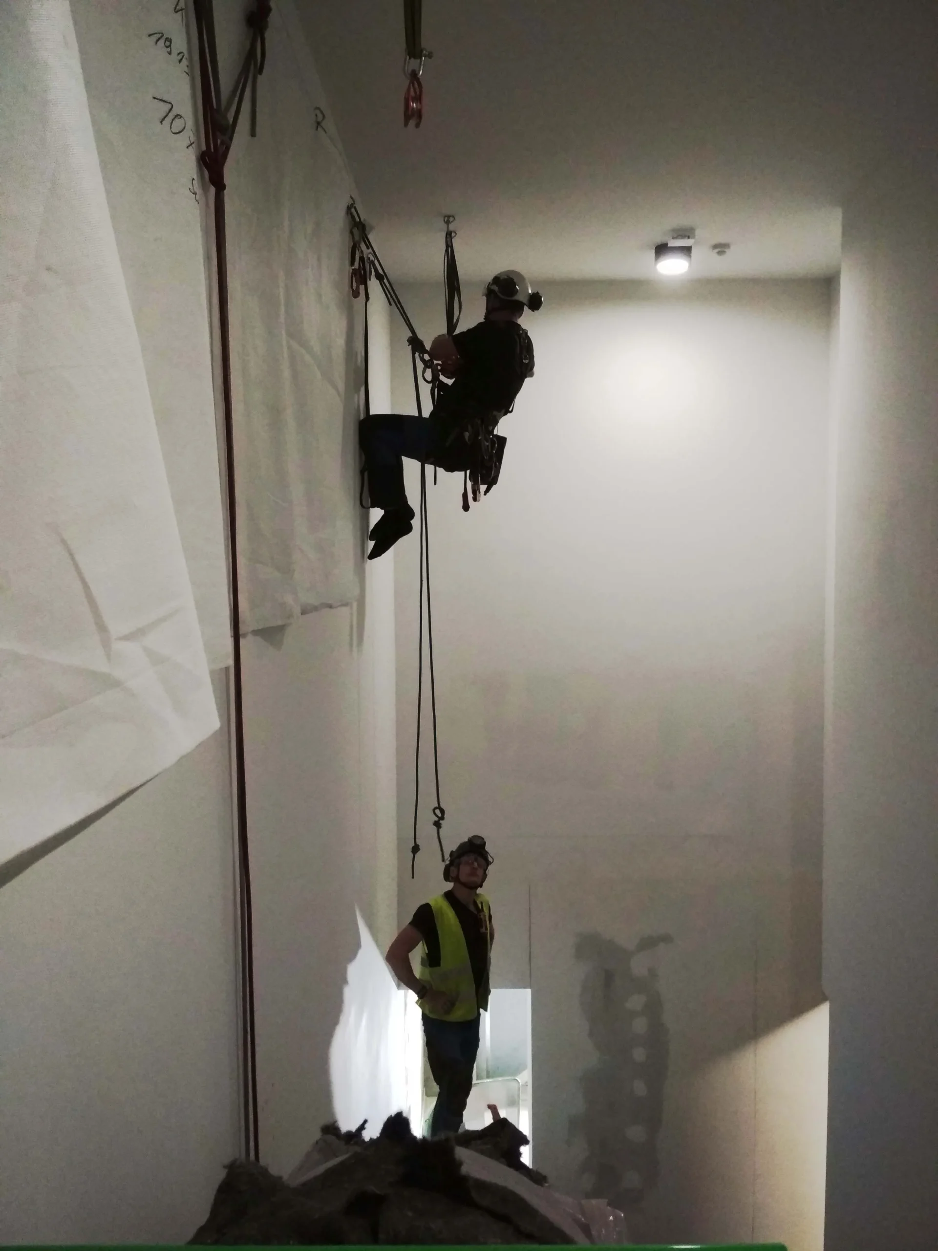 Kompleksowy montaż zjeżdżalni w budynku nowego kampusu Akademii Ekonomiczno-Humanistycznej Vizja Park przy ul Okopowej w Warszawie. Praca polegała na transporcie wysokościowym elementów o masie do 300 kg oraz montażu zjeżdżalni wewnątrz klatki schodowej budynku. Prace wymagały chirurgicznej precyzji, gdyż szerokość szybu w którym zamontowana została zjeżdżalnia była jedynie o 15 mm większa niż średnica kołnierzy łączących poszczególne segmenty zjeżdżalni.