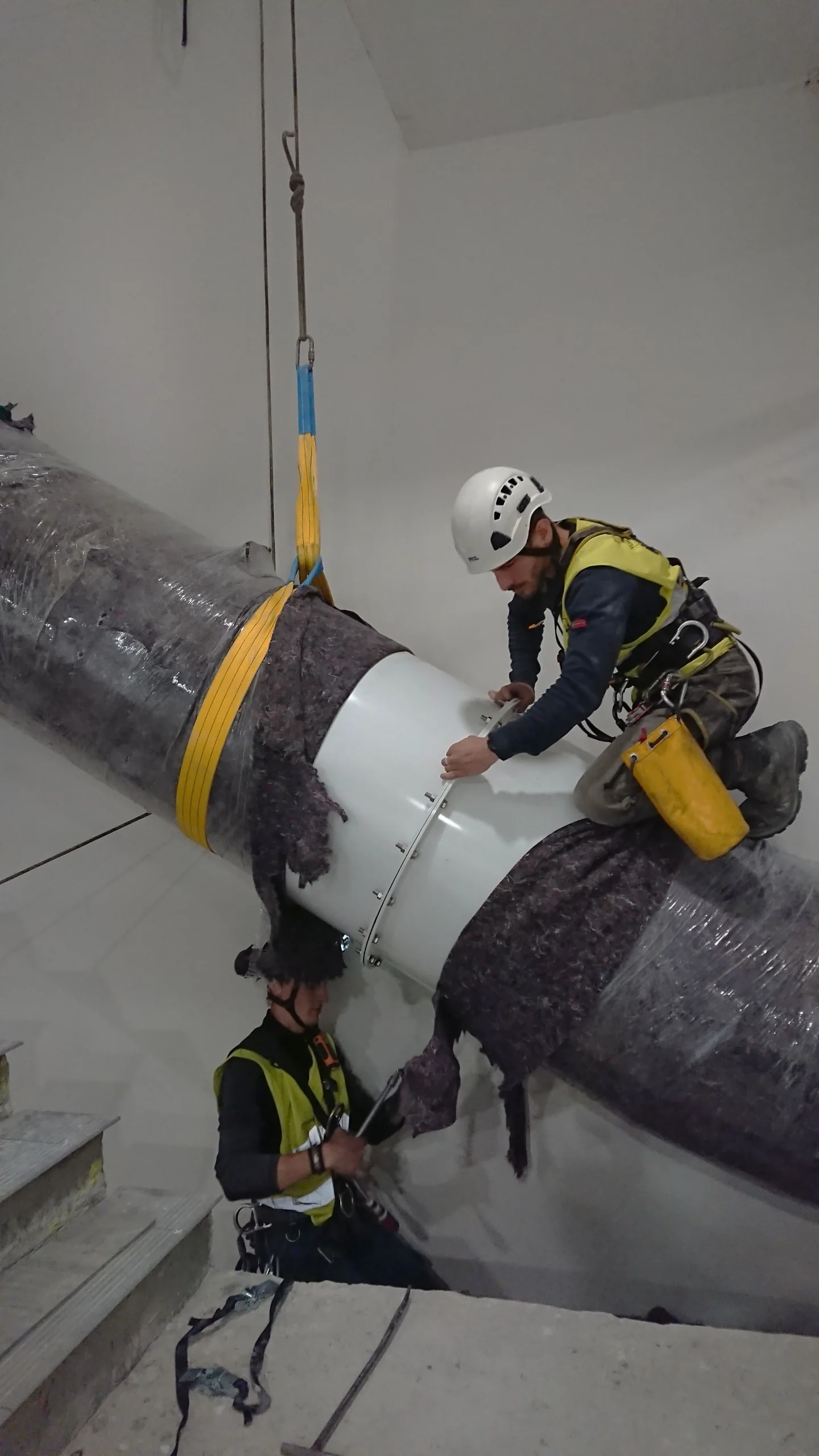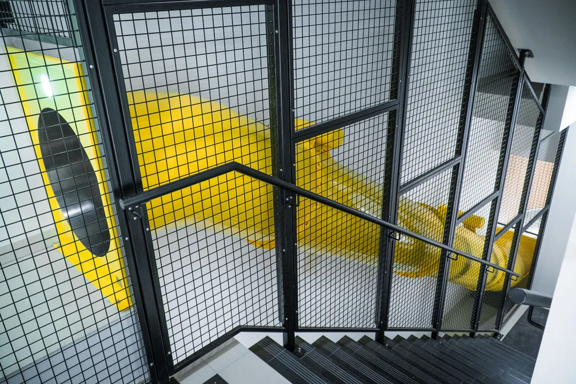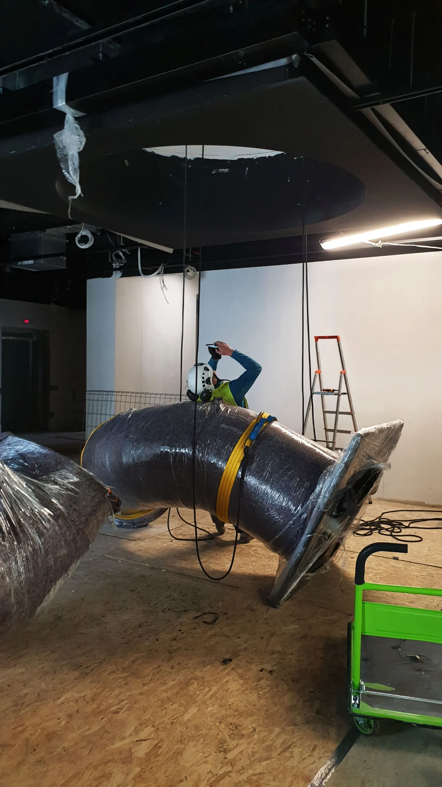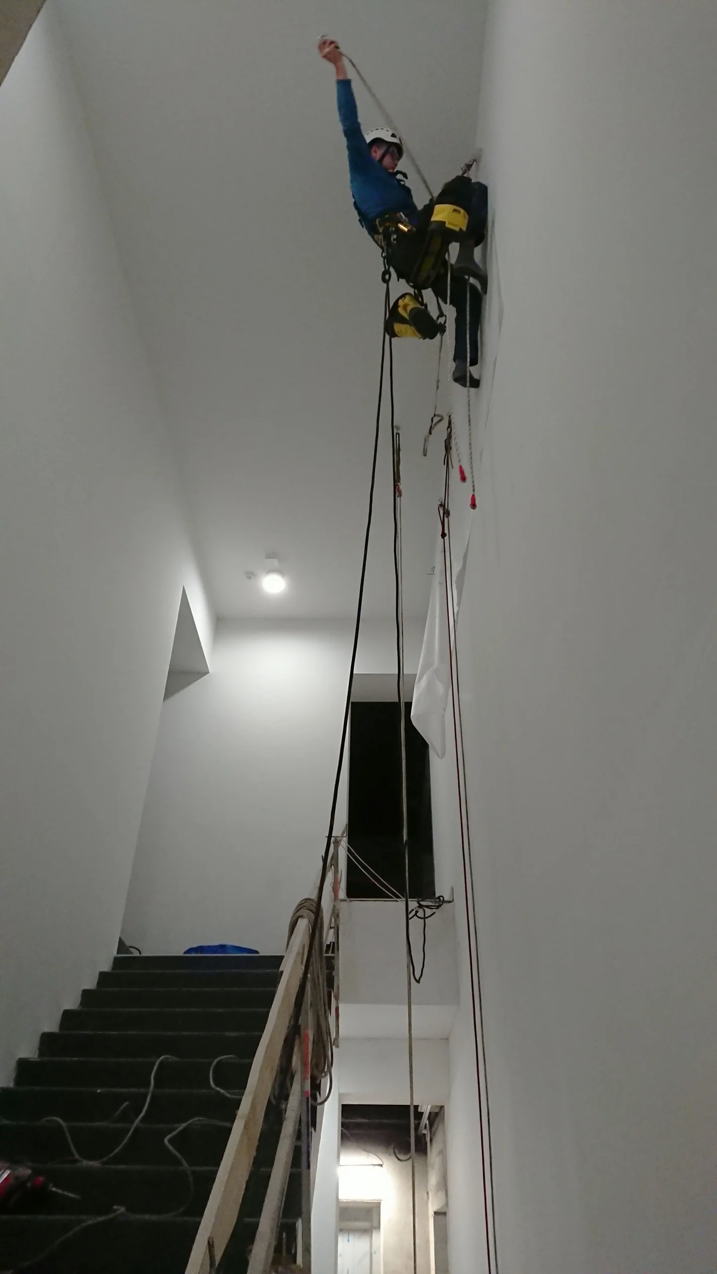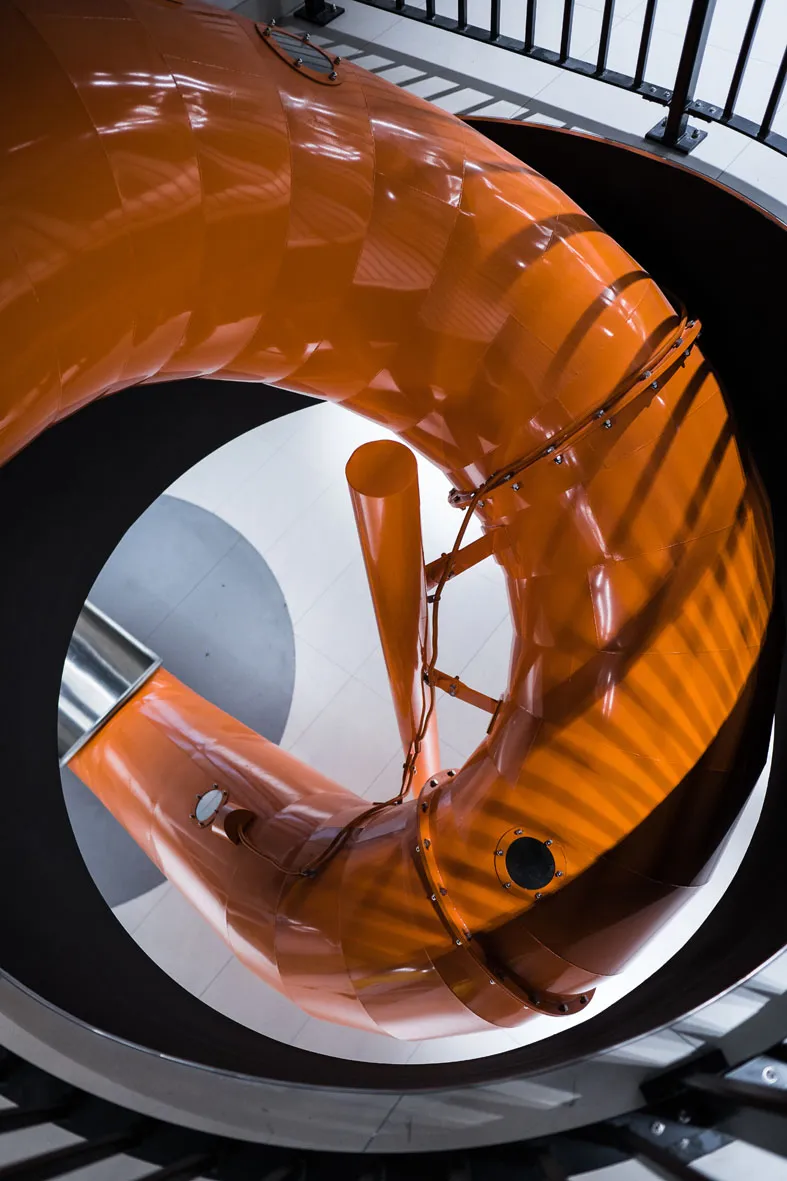 Kompleksowy montaż zjeżdżalni w budynku nowego kampusu Akademii Ekonomiczno-Humanistycznej Vizja Park przy ul Okopowej w Warszawie. Praca polegała na transporcie wysokościowym elementów o masie do 300 kg oraz montażu zjeżdżalni wewnątrz klatki schodowej budynku. Prace wymagały chirurgicznej precyzji, gdyż szerokość szybu w którym zamontowana została zjeżdżalnia była jedynie o 15 mm większa niż średnica kołnierzy łączących poszczególne segmenty zjeżdżalni.