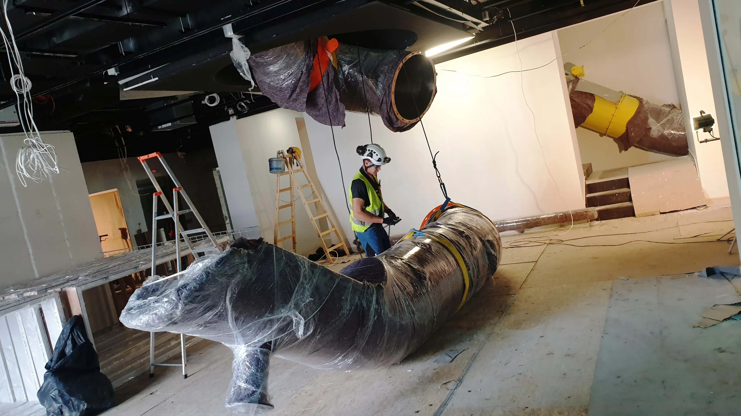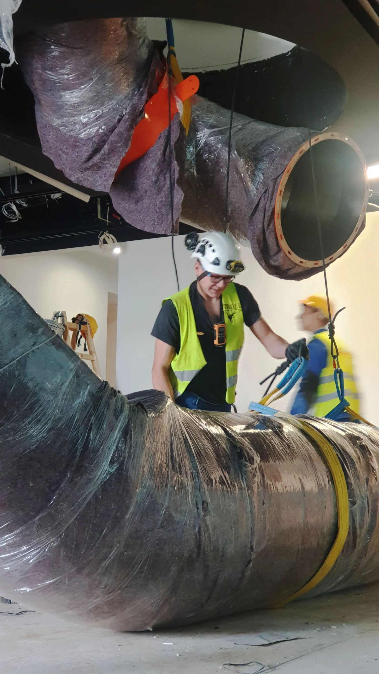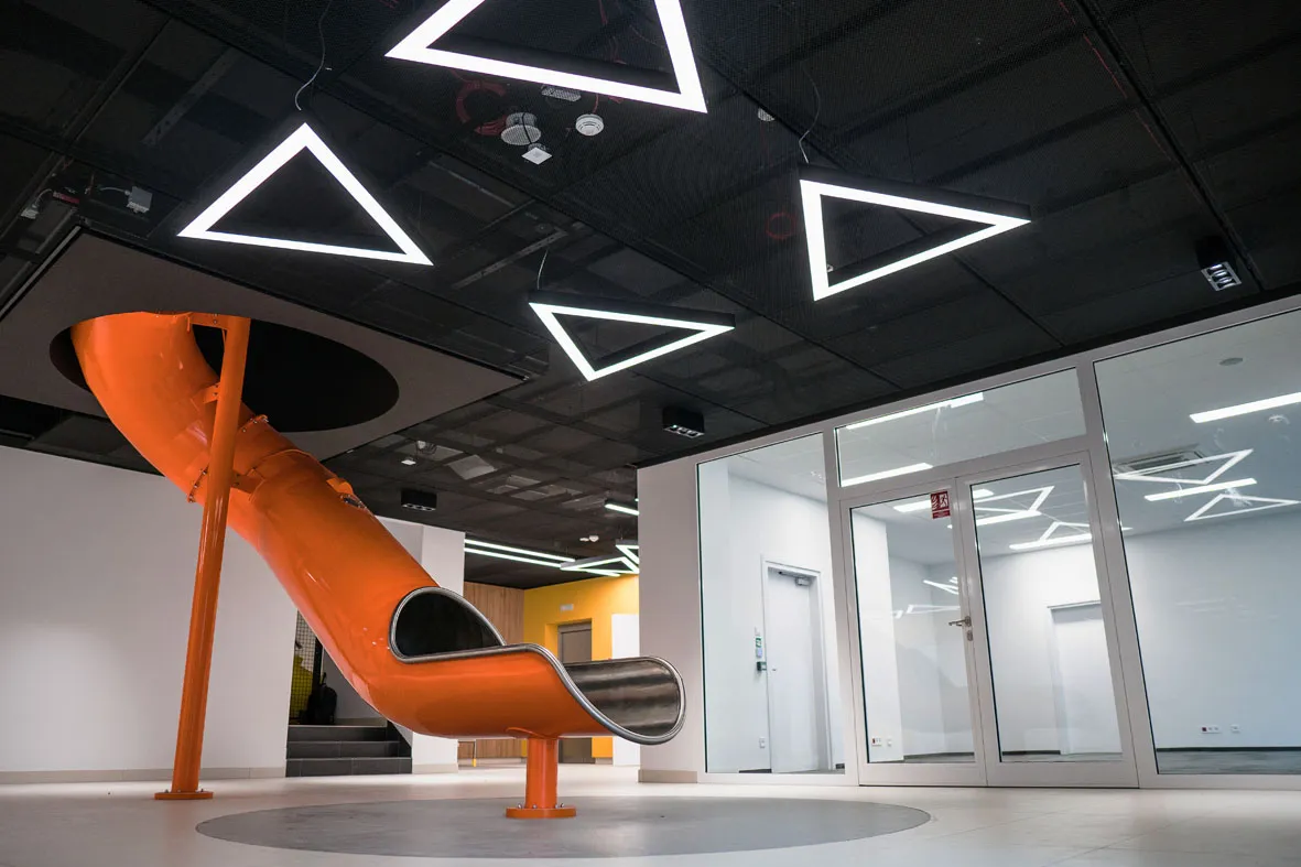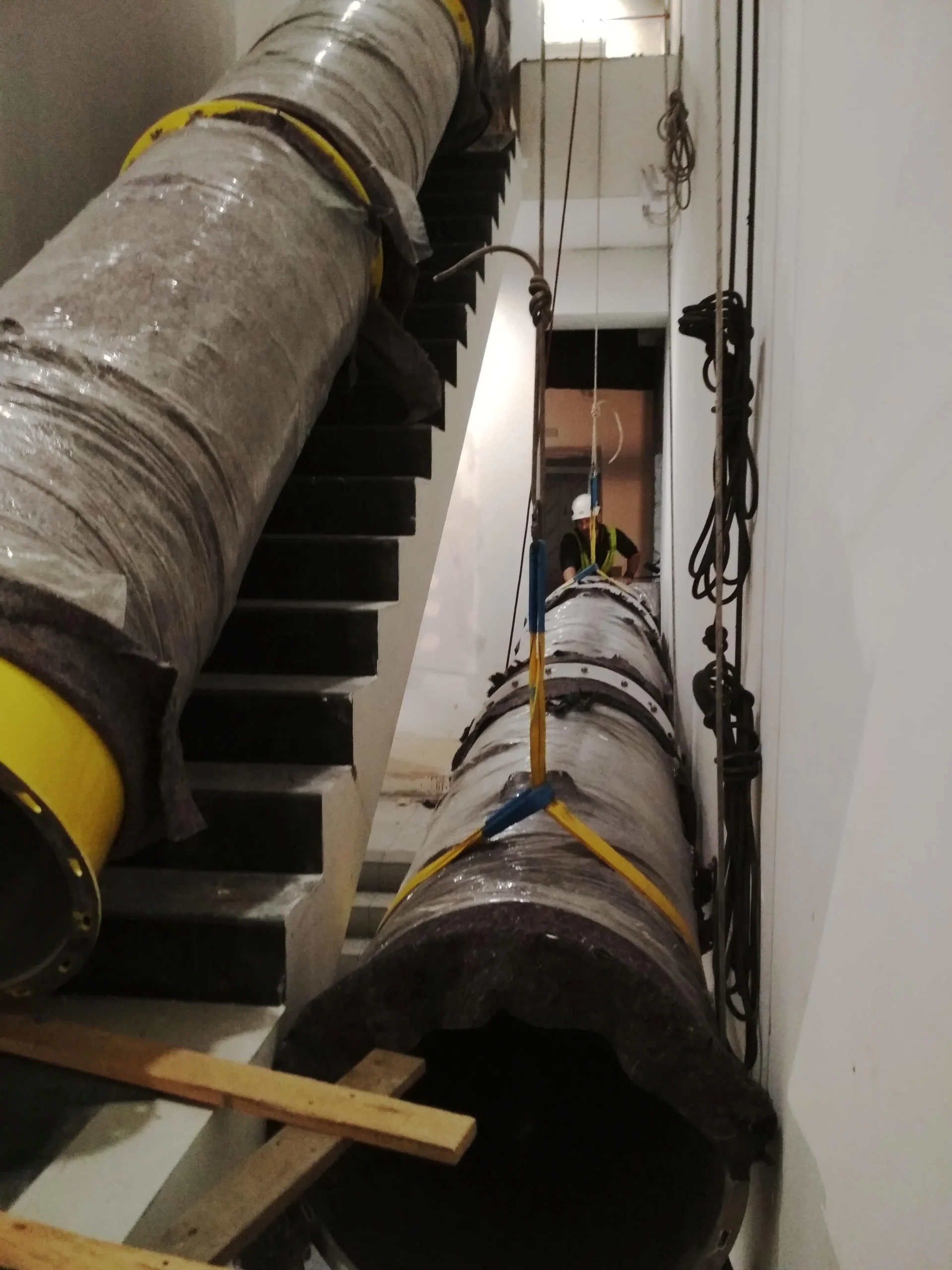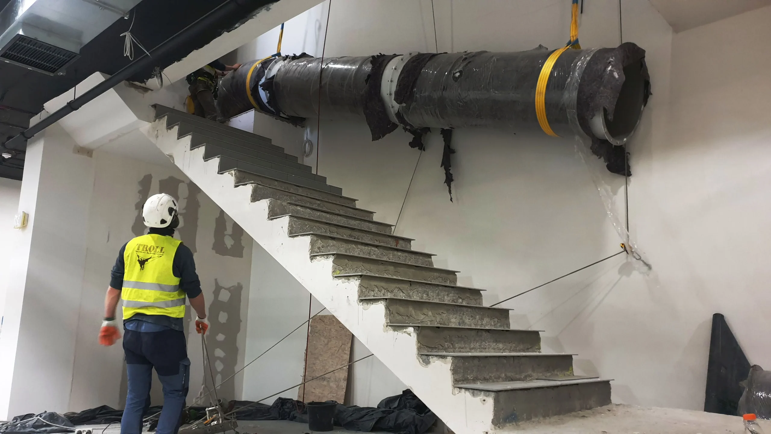 Kompleksowy montaż zjeżdżalni w budynku nowego kampusu Akademii Ekonomiczno-Humanistycznej Vizja Park przy ul Okopowej w Warszawie. Praca polegała na transporcie wysokościowym elementów o masie do 300 kg oraz montażu zjeżdżalni wewnątrz klatki schodowej budynku. Prace wymagały chirurgicznej precyzji, gdyż szerokość szybu w którym zamontowana została zjeżdżalnia była jedynie o 15 mm większa niż średnica kołnierzy łączących poszczególne segmenty zjeżdżalni.